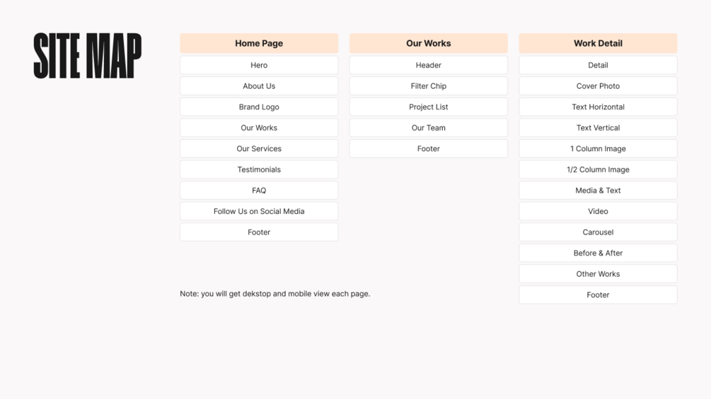 - 1 landing page, 1 project list page, and 1 detail project page