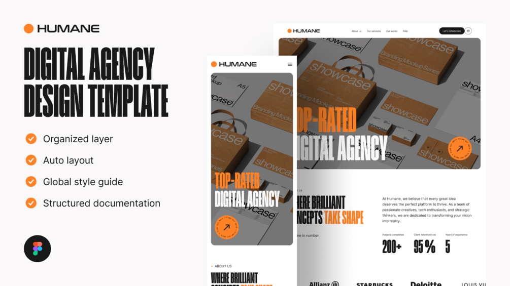 Humane - digital agency landing page template is an Figma template for any digital agency.